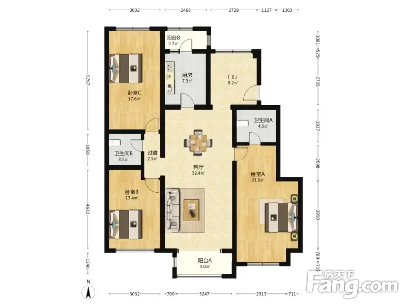 户型齐全,主打户型方正,主卧朝南,客厅朝南三居