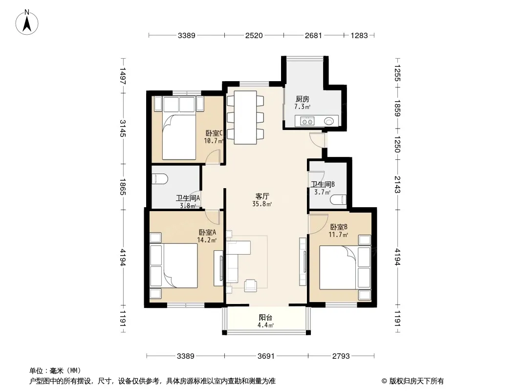 恒华安纳湖 3室2厅 南 北