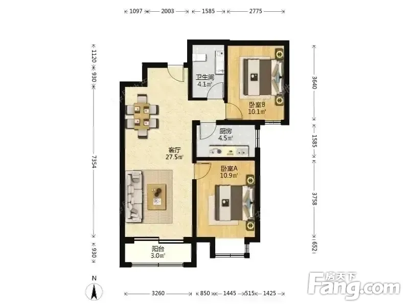 户型齐全,主打户型方正,明卫,明厨,主卧朝南二居