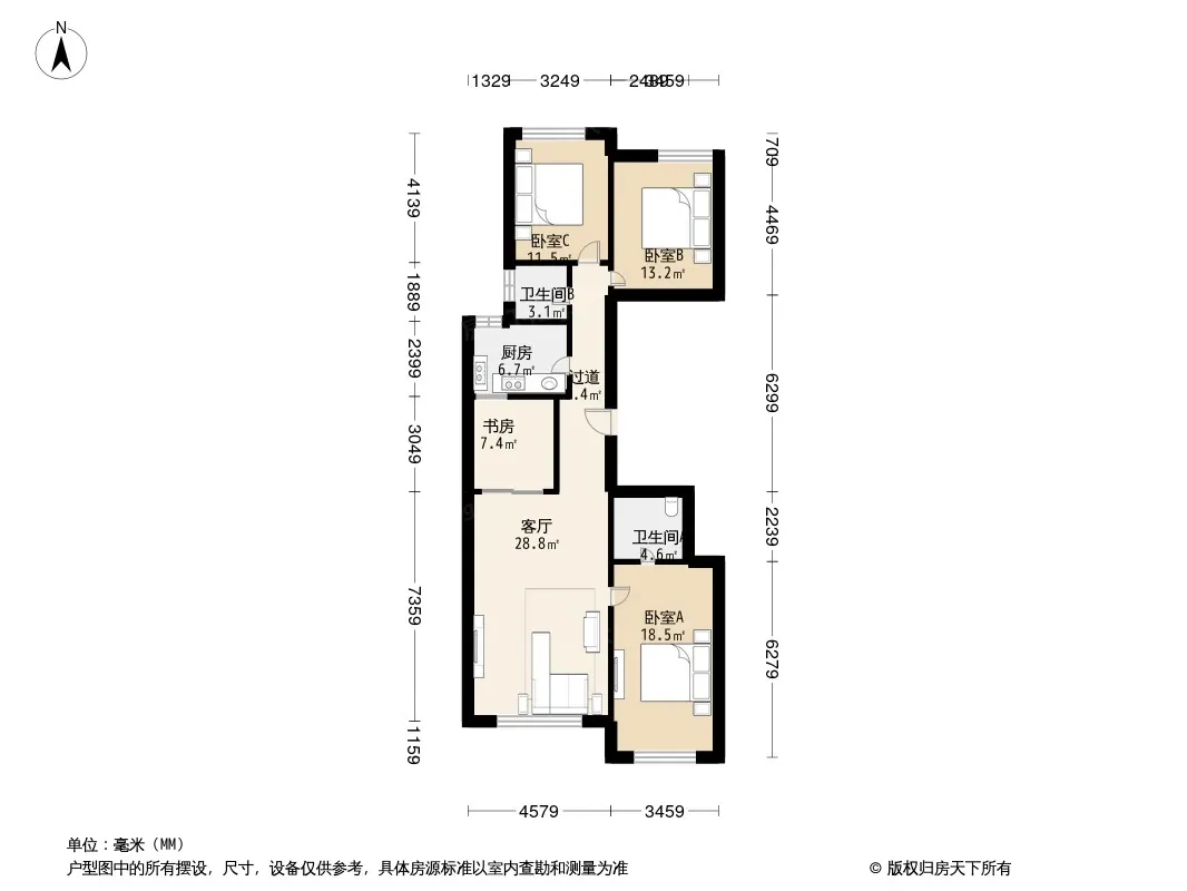 户型齐全,主打客厅朝南三居