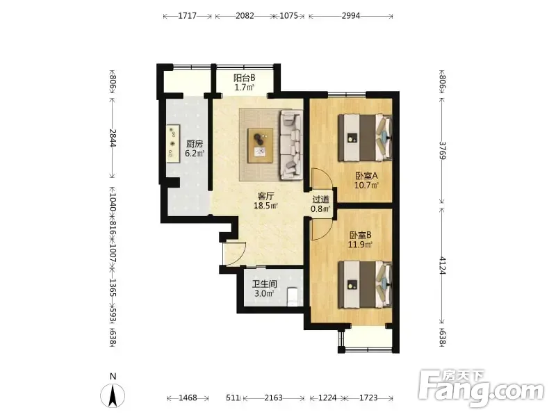 北郡嘉源 2室1厅 南 北