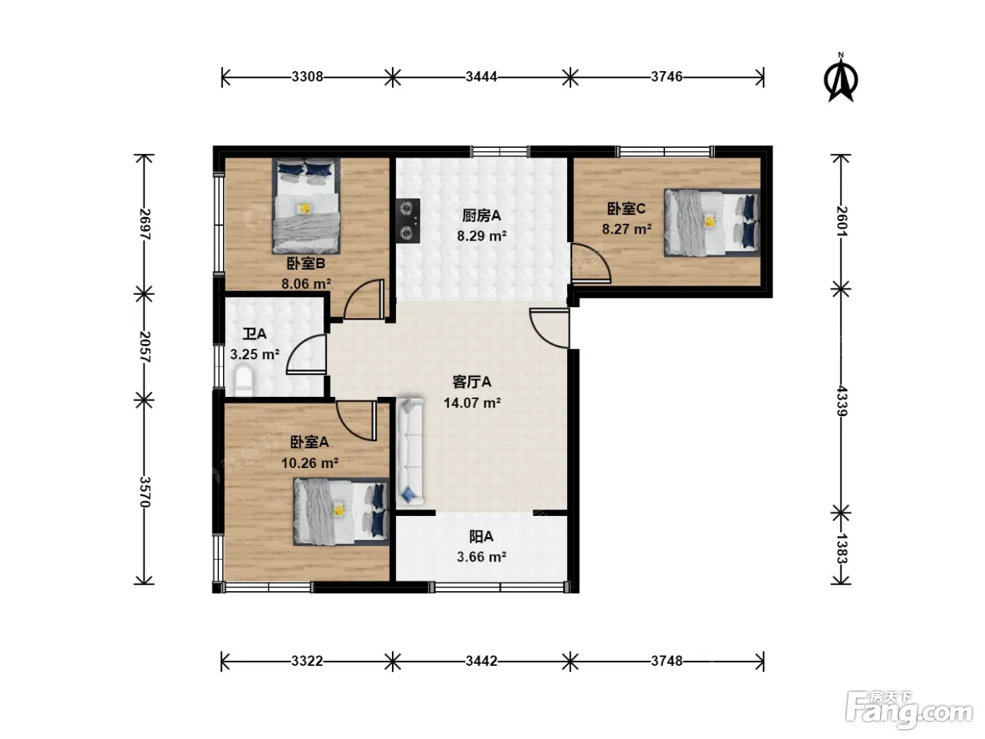 金隅通和园 3室1厅 南 北