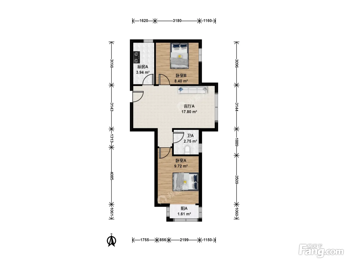 户型齐全,主打客厅朝南,双阳台二居