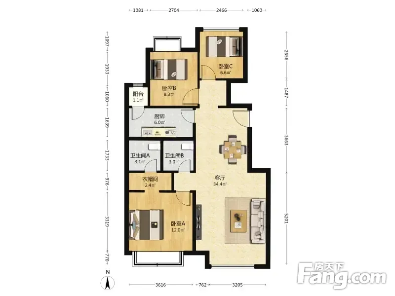 3室1厅2卫