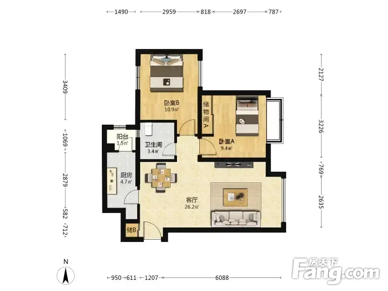 户型齐全,主打户型方正,客厅朝南二居