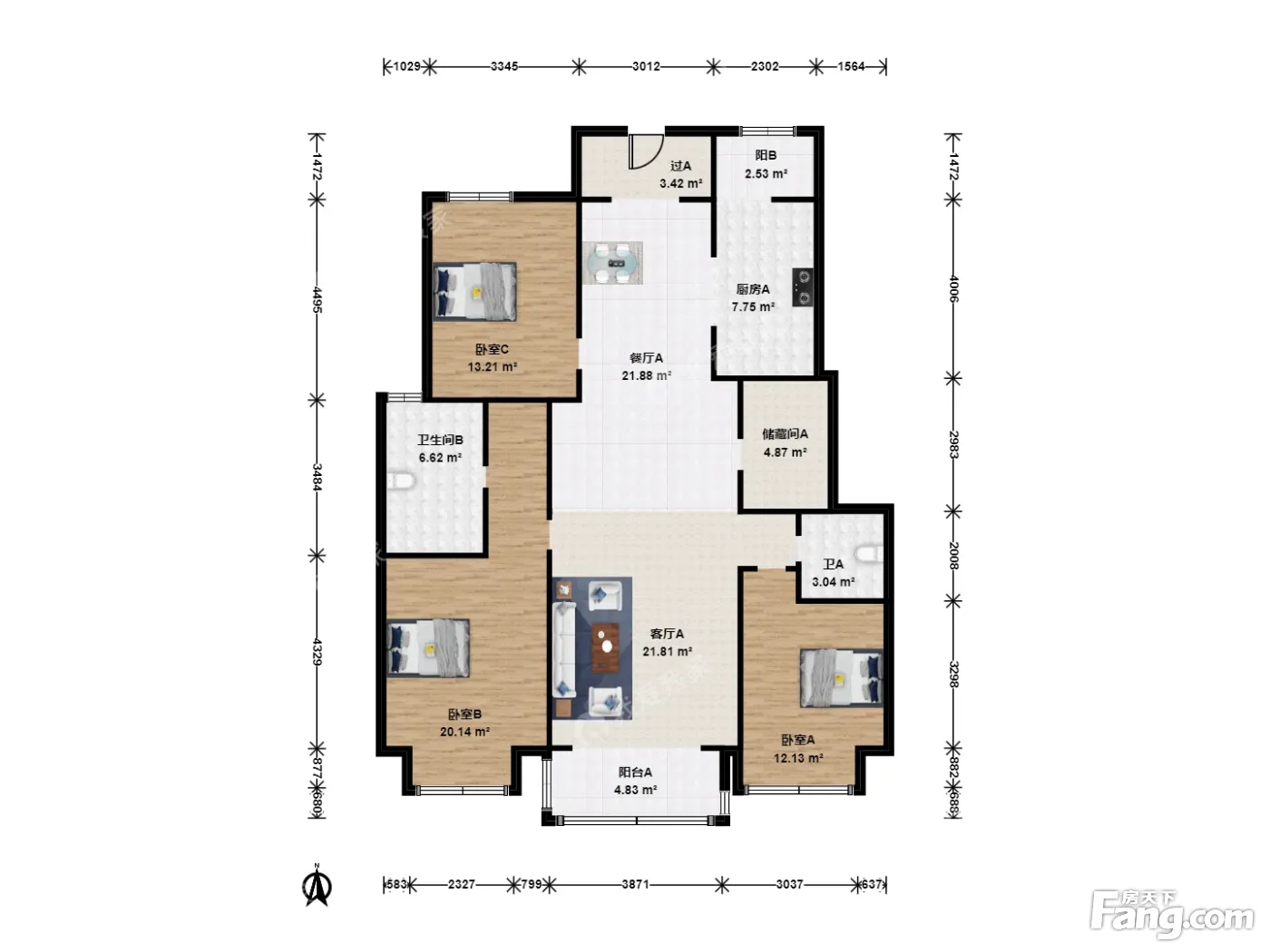 户型介绍:大三居 双卫 独立入户 南北向