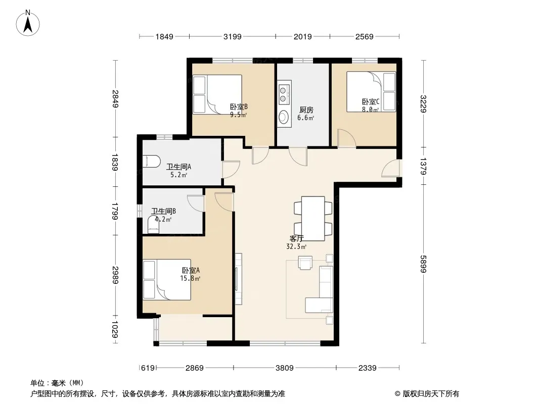 户型齐全,主打户型方正,明卫,明厨,客厅朝南三居