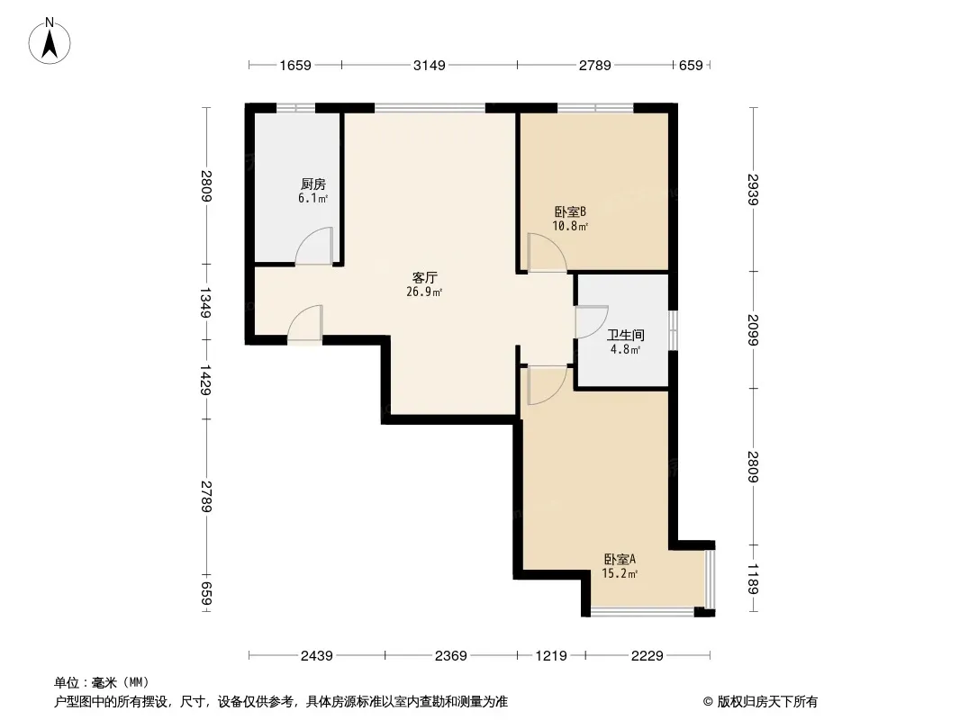 万科金域东郡 2室1厅 南 北