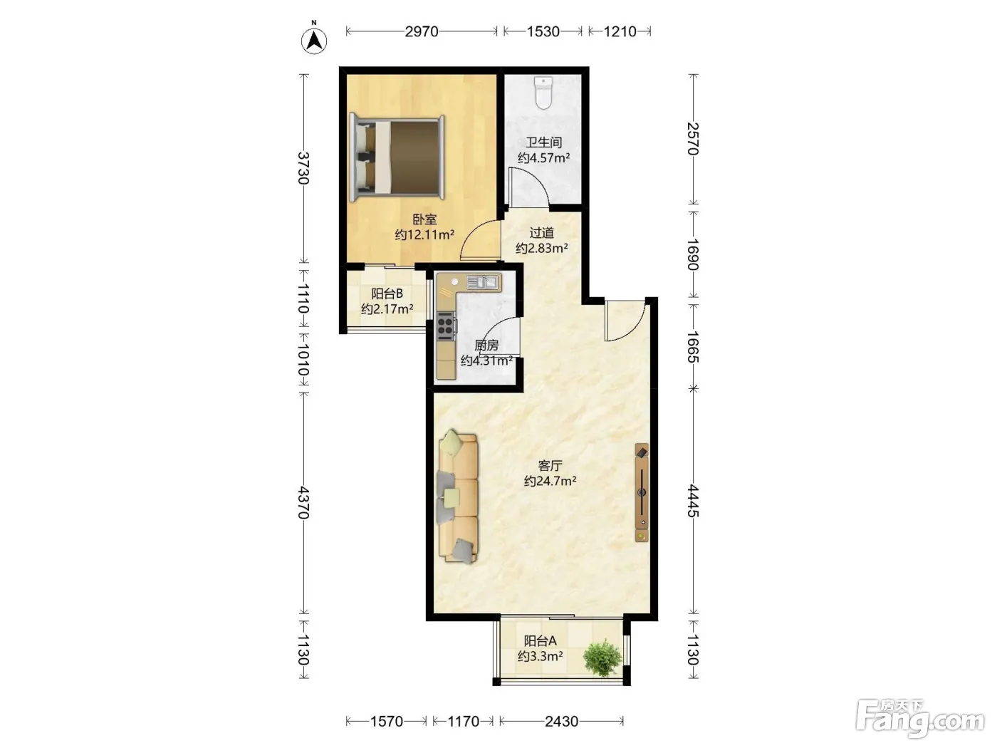 户型齐全,主打明厨,客厅朝南,双卧朝南二居