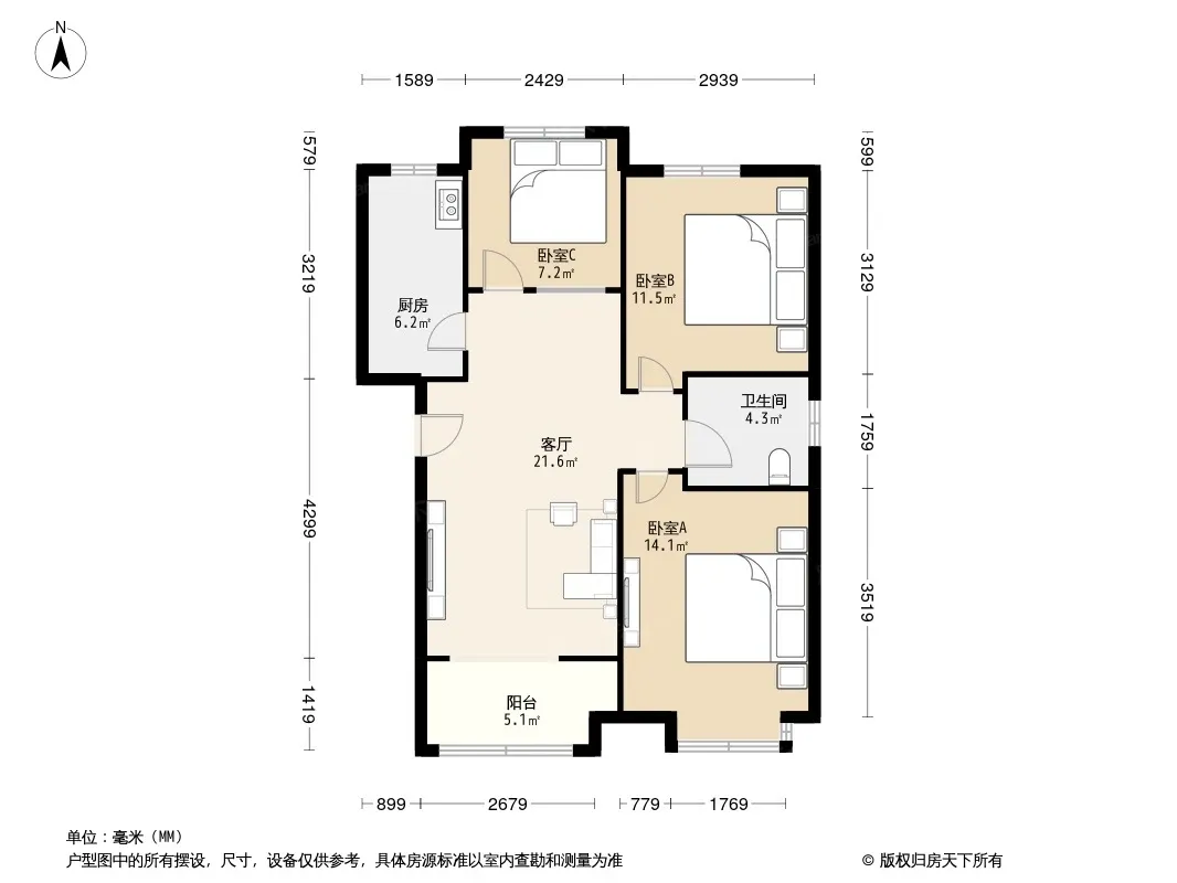 户型齐全,主打户型方正,明卫,明厨,主卧朝南三居