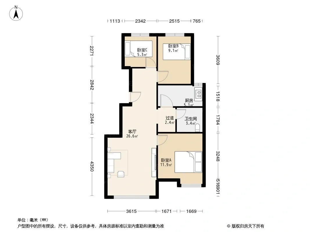 华远澜悦 3室1厅 南 北