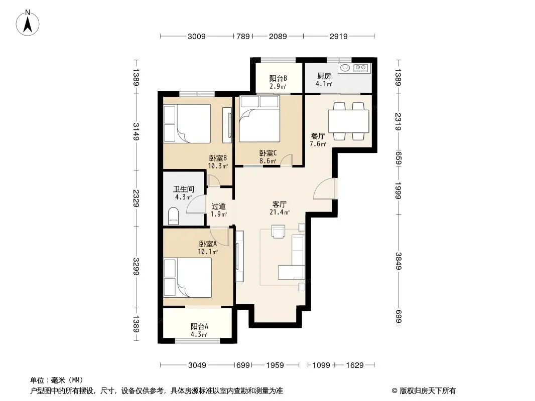 北京怡园 3室1厅 南 北