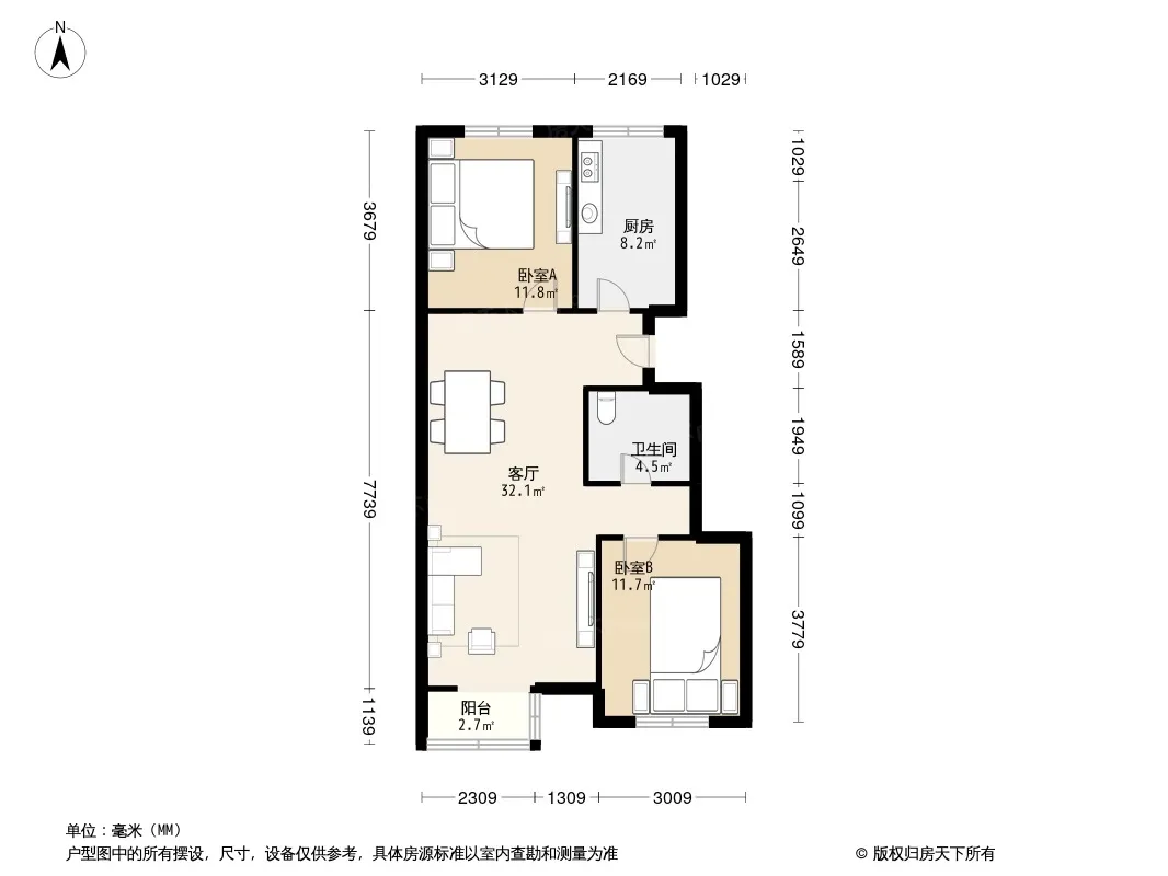 户型齐全,主打户型方正,明厨,主卧朝南二居