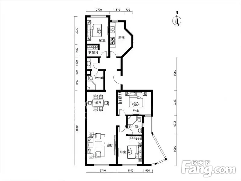 户型齐全,主打独立衣帽间,客厅朝南三居