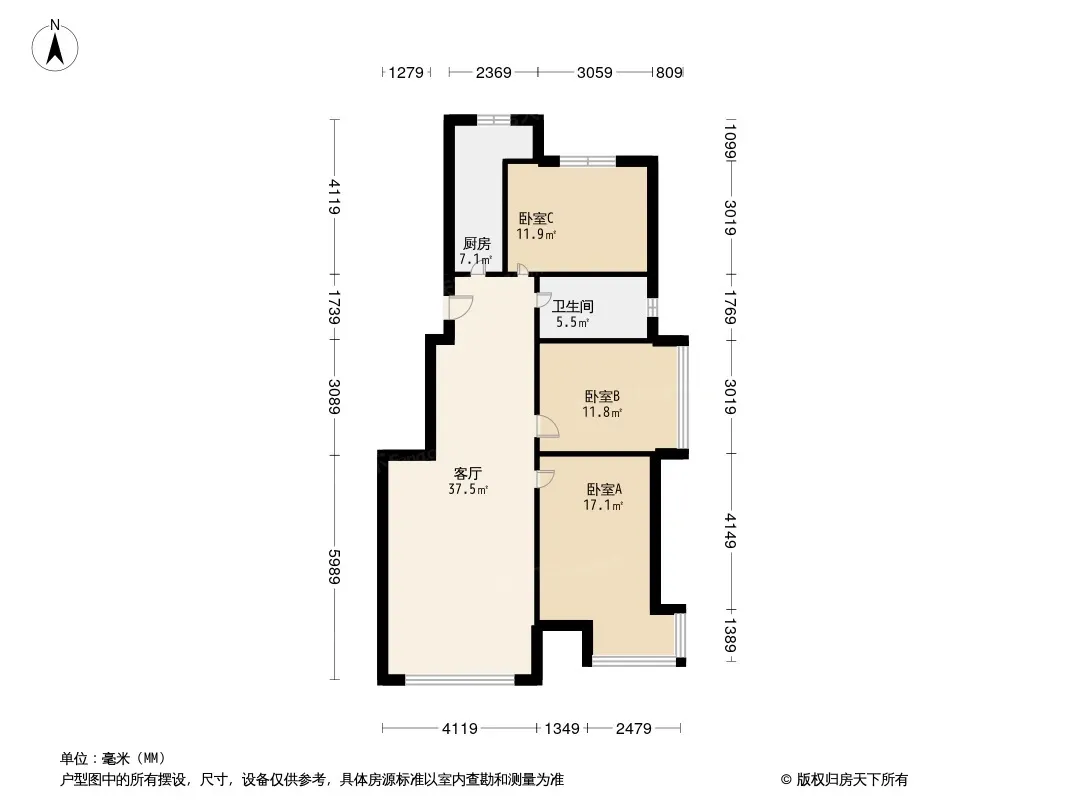 泰禾一号公馆 3室1厅 南 北