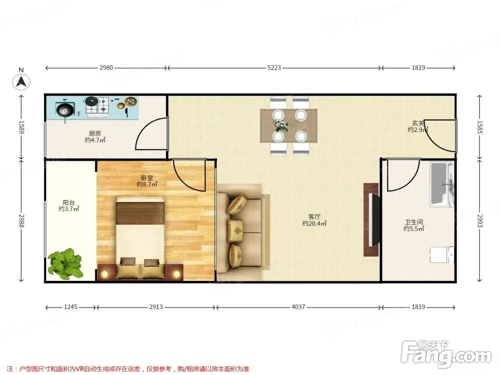 户型齐全,主打明厨,客厅朝南二居