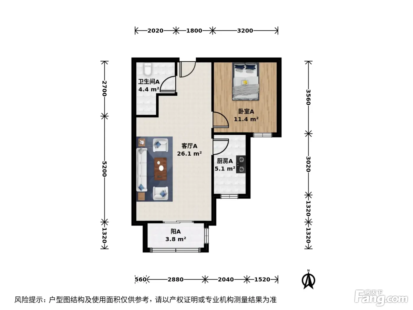 万达·帅府园二期·1室·1厅