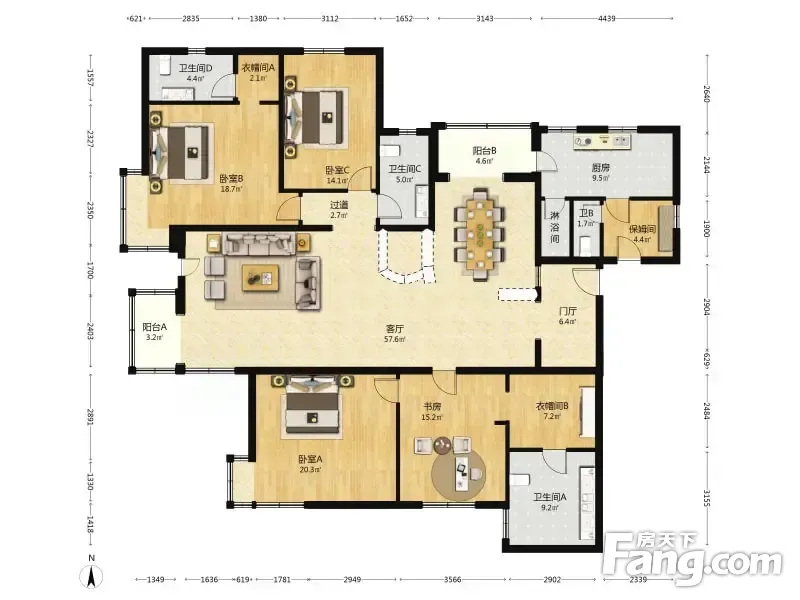 房屋拥有相对宽松的尺寸,布局通透,动静分离,设计豪华