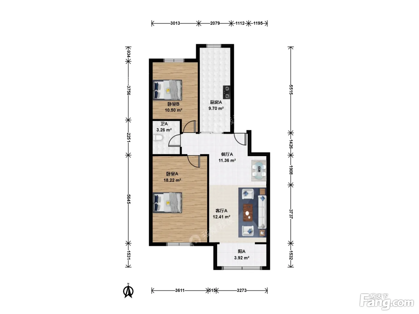 户型齐全,主打动静分离,采光充足二居
