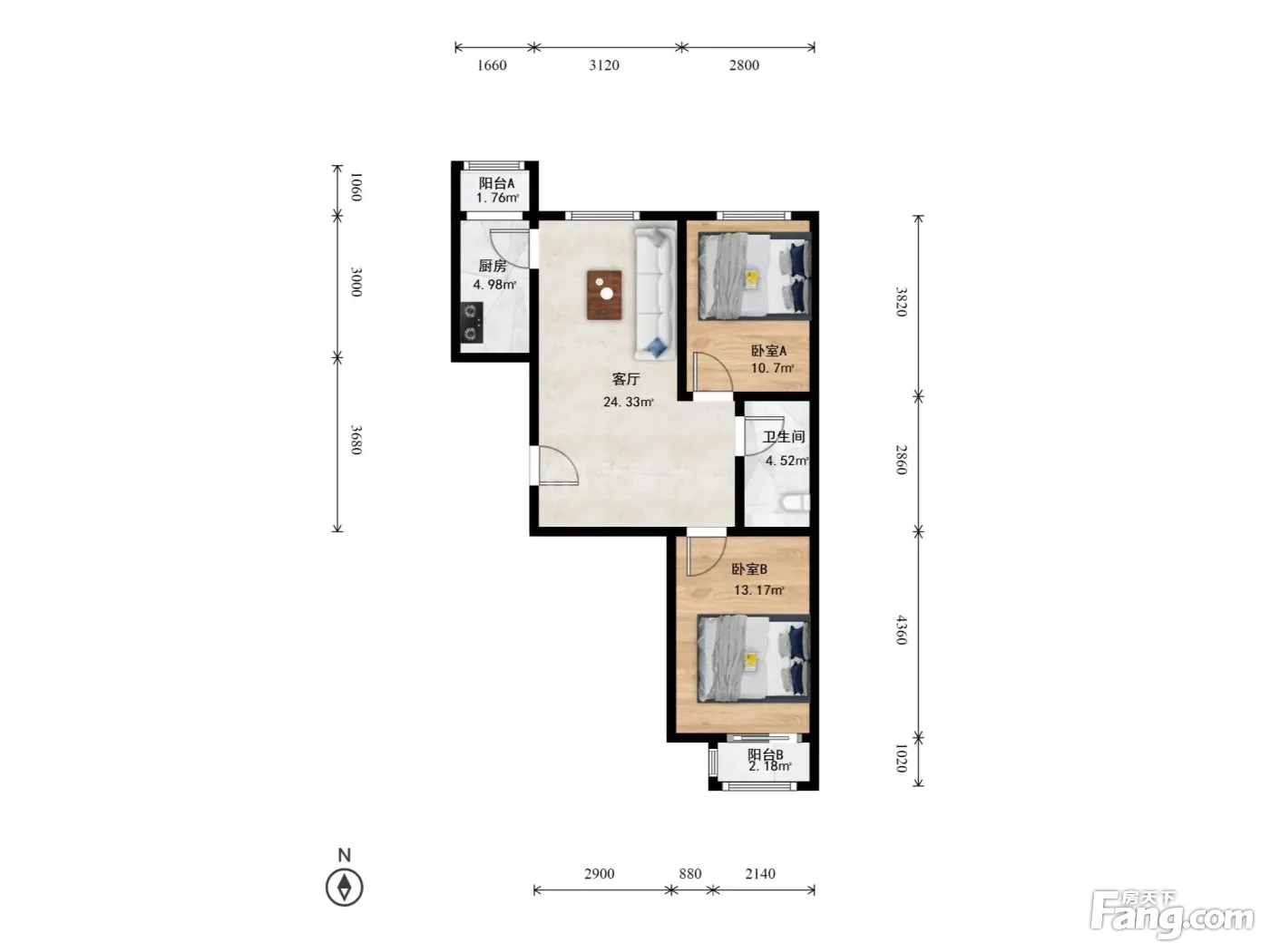 户型齐全,主打户型方正,明卫,客厅朝南,双阳台二居