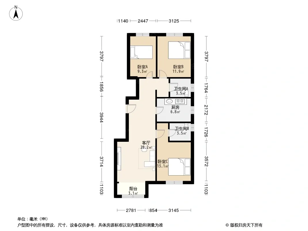 首创·美澜湾F区3室2厅南北