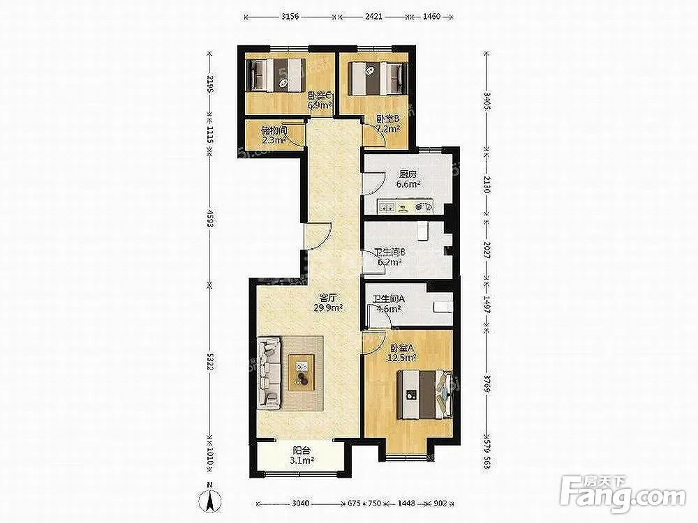 户型齐全,主打南北通透,采光充足三居