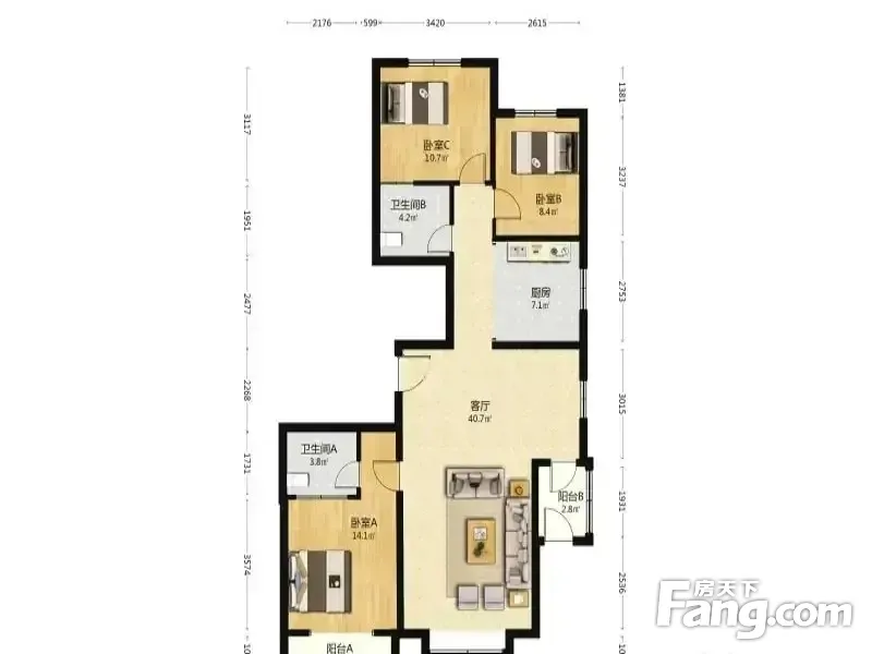户型齐全,主打南北通透,采光充足三居