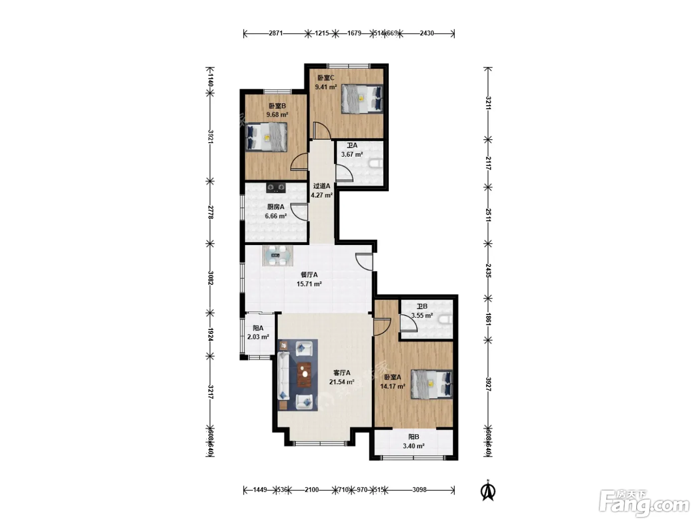 户型齐全,主打南北通透,采光充足三居