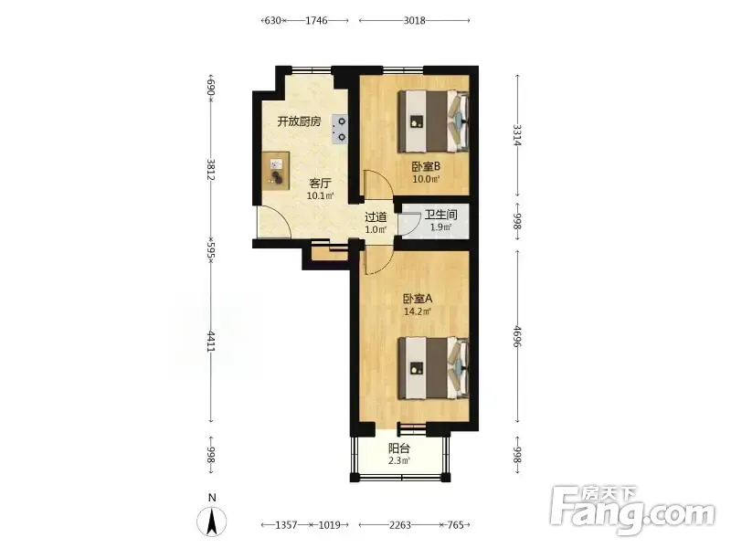 户型齐全,主打明厨,客厅朝南二居