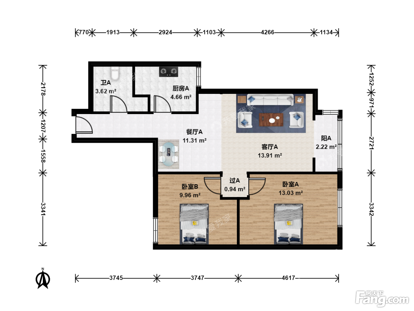 户型齐全,主打明厨,客厅朝南二居