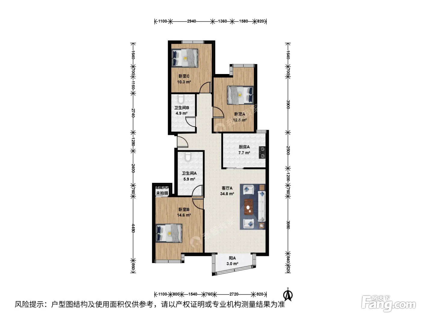 户型介绍:此房户型为3室1厅2卫,建筑面积为131.28平米,朝向为南北。
