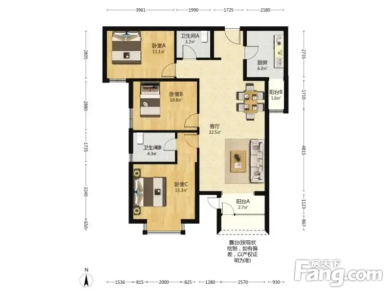 3室1厅2卫