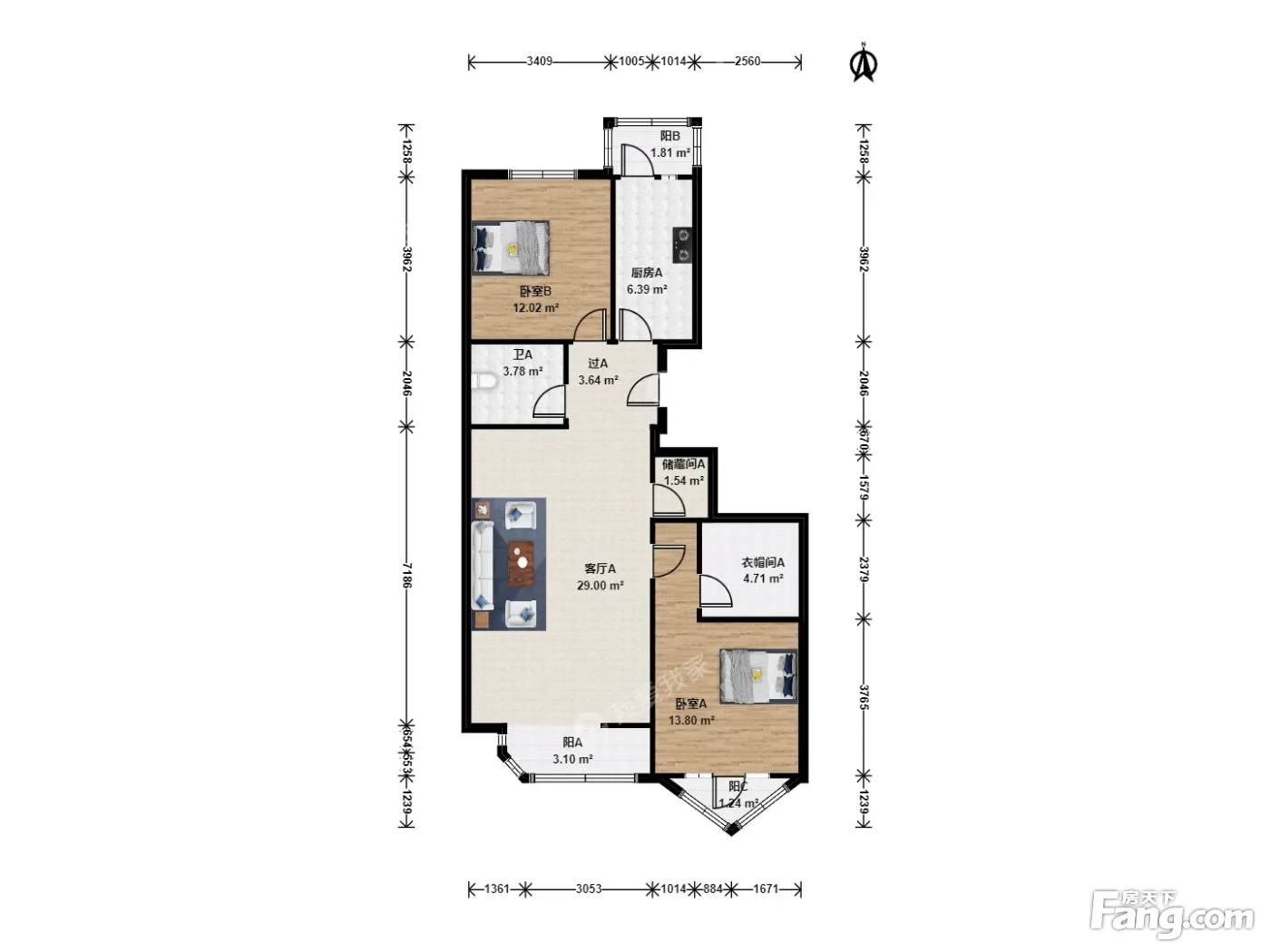户型齐全,主打独立衣帽间,客厅朝南,双卧朝南二居