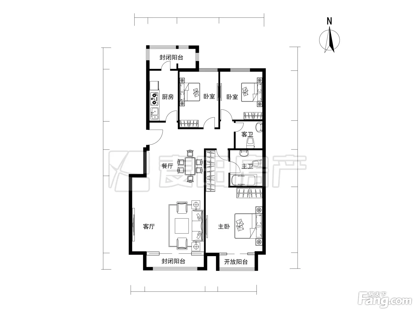 户型齐全,主打户型方正,独立衣帽间,明厨,双阳台,主卧朝南三居