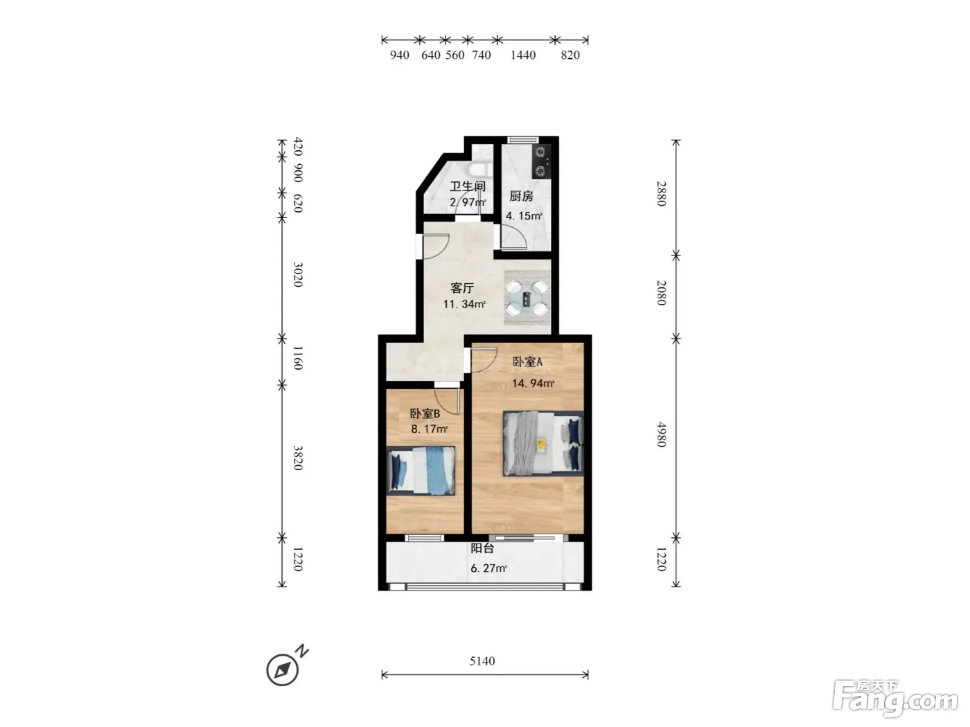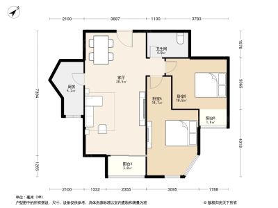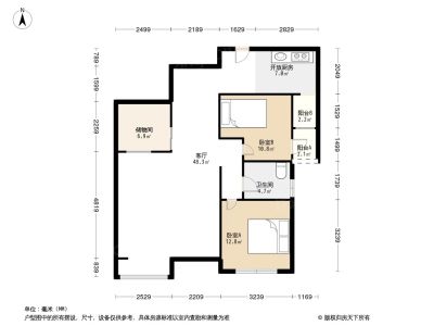 户型介绍:两个卧室朝西南。厨房朝北,客厅在中间