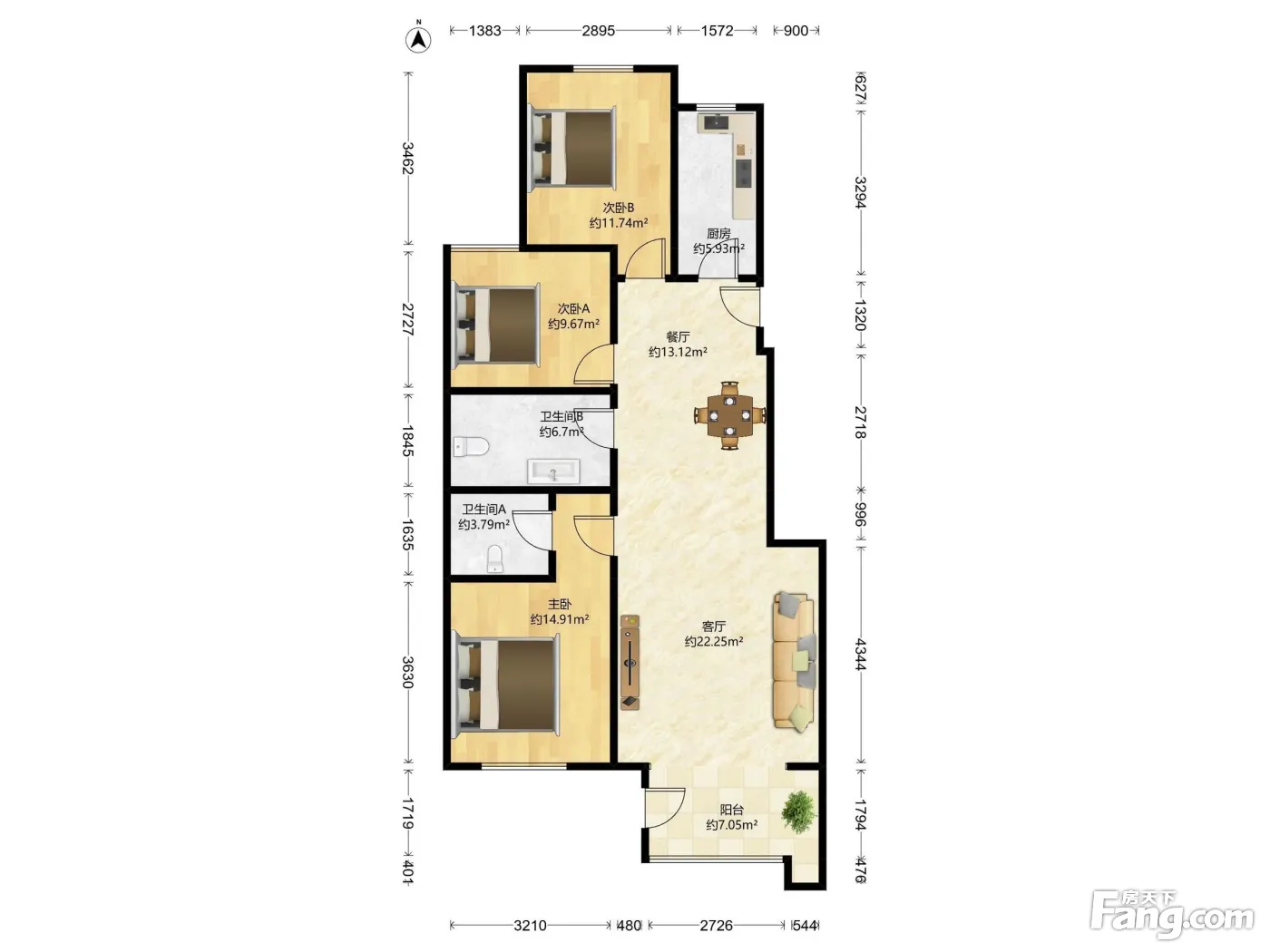 户型齐全,主打南北通透,干湿分离三居