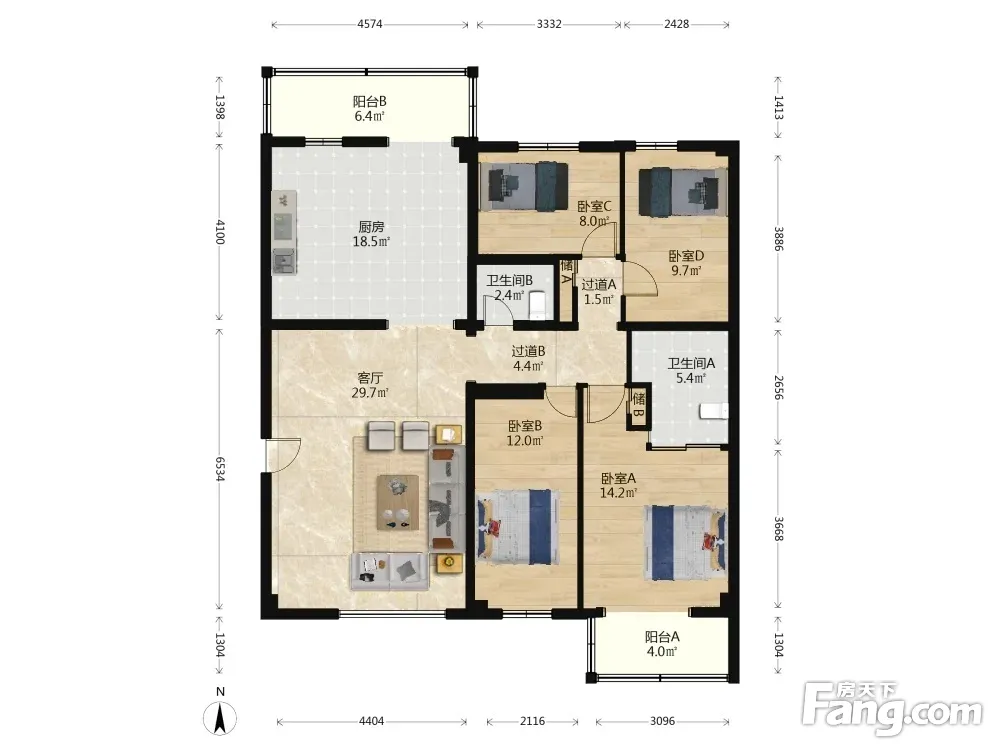 户型齐全,主打户型方正,明厨,双阳台四居