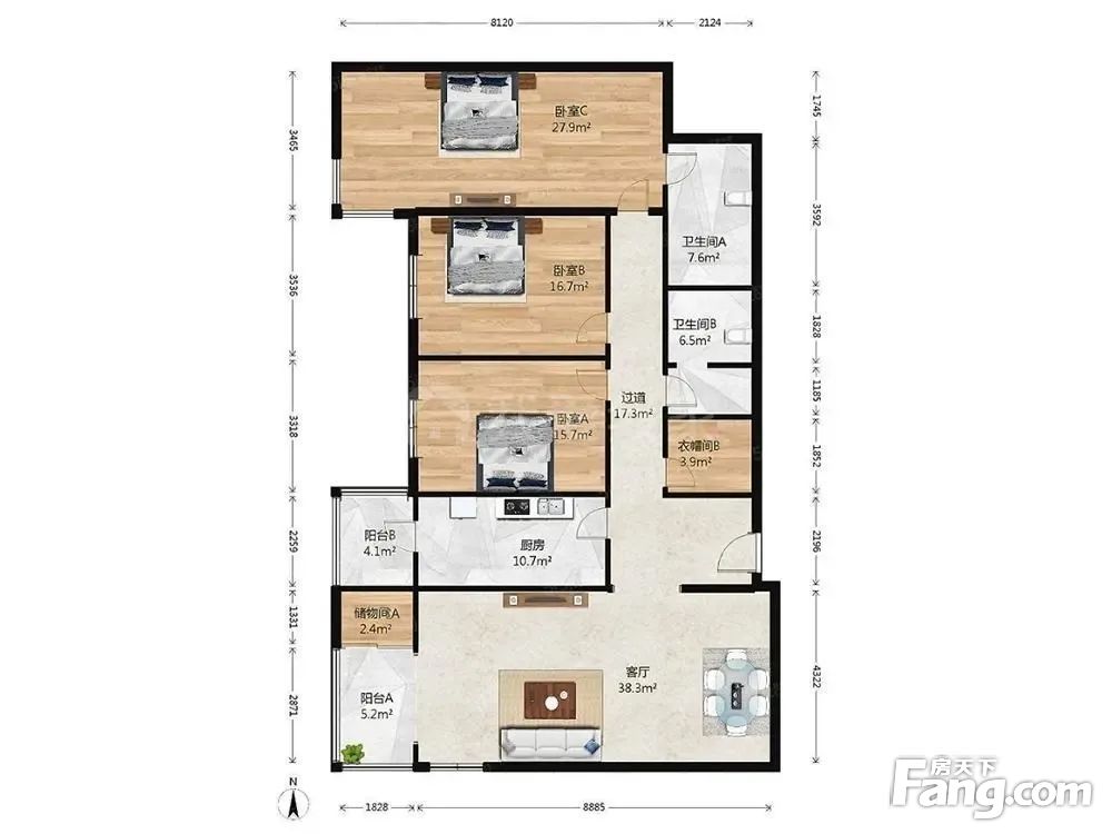 户型齐全,主打户型方正,明卫三居