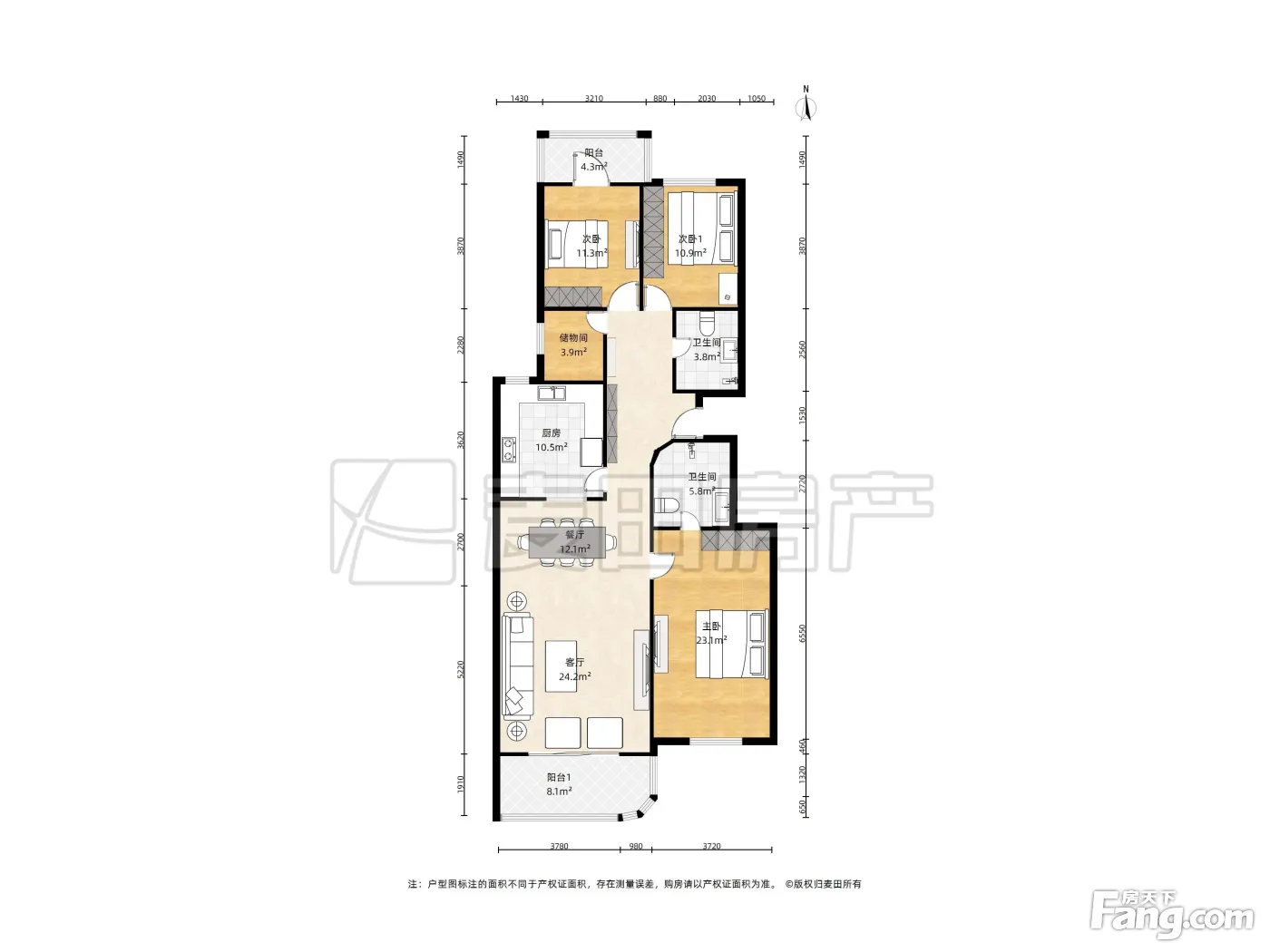 户型齐全,主打户型方正,明厨,独立衣帽间,双阳台,主卧朝南三居