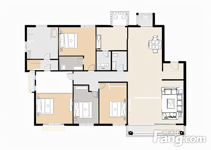 房屋拥有相对宽松的尺寸,布局通透,动静分离,设计豪华