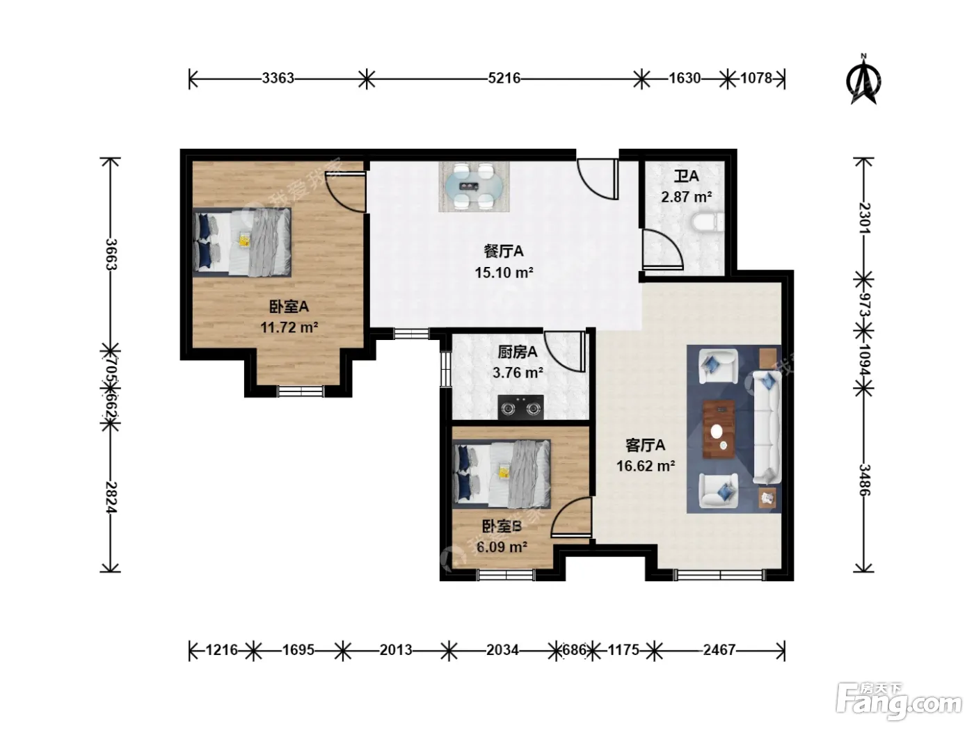 核心卖点:房子是在小区北面的楼,户型是方正,好摆家具