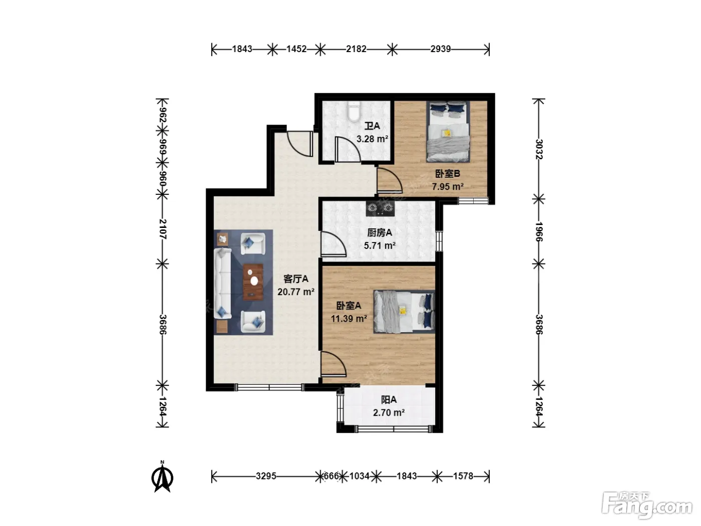户型齐全,主打客厅朝南,双阳台二居