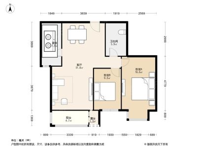 户型齐全,主打明厨,客厅朝南,双卧朝南二居