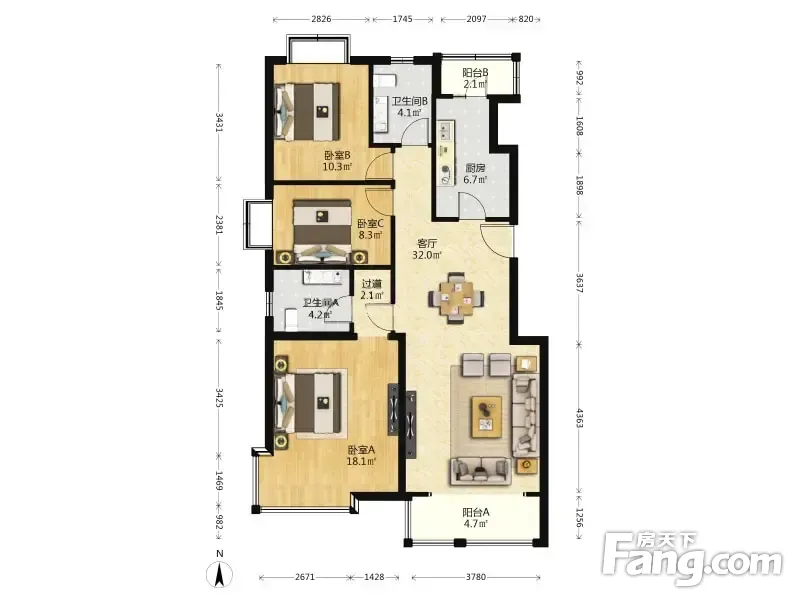 上海沙龙 3室1厅 南 北