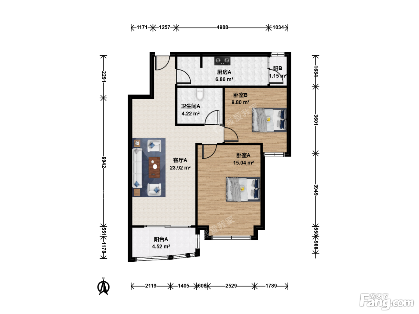 保利欣苑全南向两居室,低楼层无遮挡