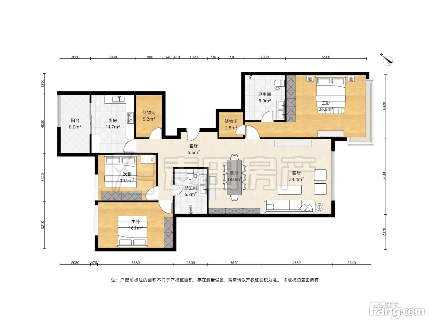 户型齐全,主打户型方正,独立衣帽间,客厅朝南,主卧朝南三居