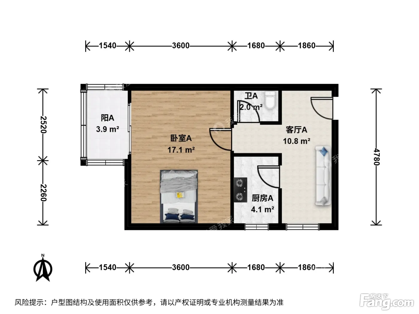明源北里1室1厅南北
