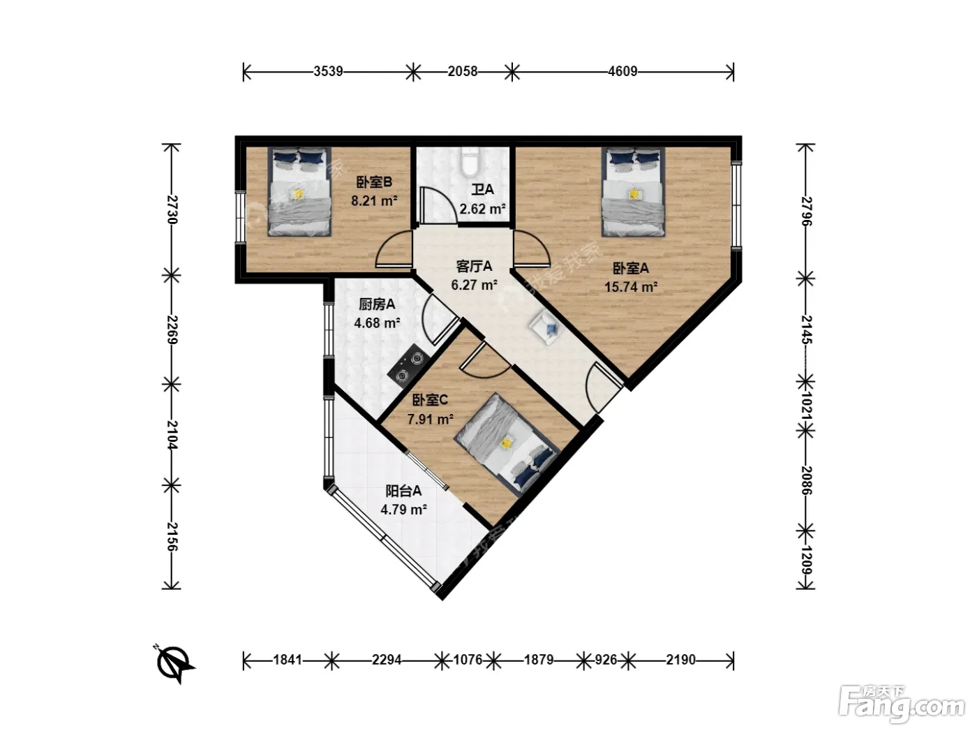 户型介绍:房子正规两居室,经典两居,采光好,视野开阔,客厅是明厅,可利用空间大,格局方正,无浪费面积。