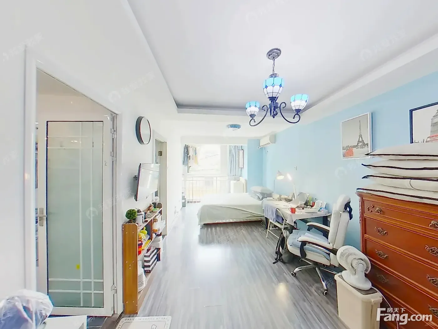 户型介绍:此房户型为南向开间,独立卫生间、厨房带有燃气。卧室朝南带有落地阳台,视野、采光都没问题 格局方正无浪费。