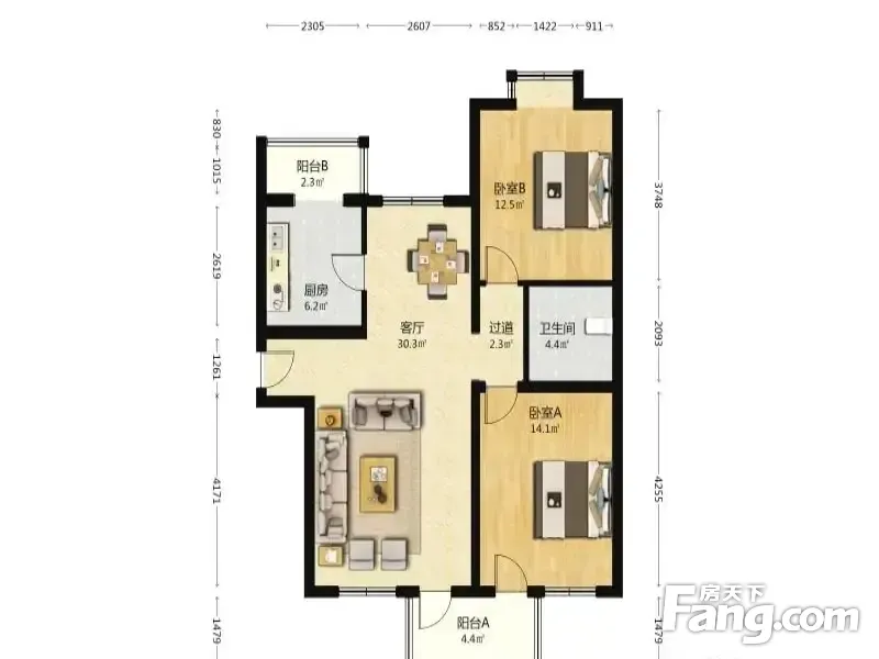 户型齐全,主打明厨,明卫,客厅朝南,全明格局,双阳台,主卧朝南三居